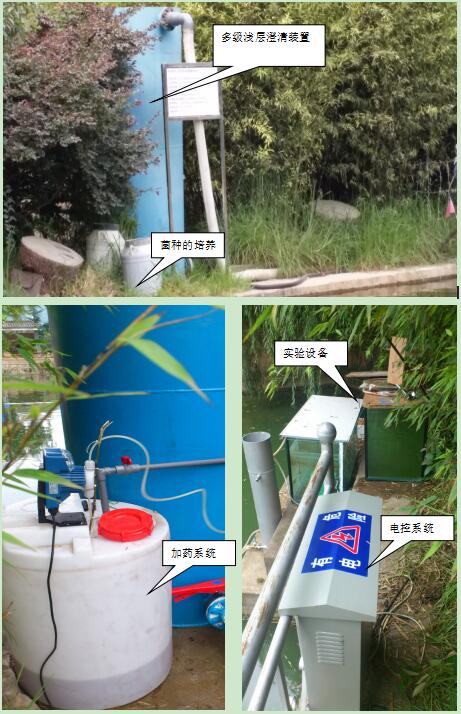 項(xiàng)目采用有效微生物菌技術(shù)結(jié)合循環(huán)凈水工藝對小型湖泊、池塘、水庫等污染匯富營養(yǎng)化水體進(jìn)行原位、異位結(jié)合修復(fù),首次提出了富營養(yǎng)化水體藻菌共生概念,快速建立水體生態(tài)自凈平衡系統(tǒng),實(shí)現(xiàn)對水體富營養(yǎng)化的根本治理。通過對天然沸石超微改性后,配合常用凈水劑復(fù)合制得物理型助凝劑(JYX-助凝劑),吸附、脫色、助凝等功能優(yōu)異,可有效吸附水中氮磷。研制出漂移式多功能凈水設(shè)備,集凈化除藻、投菌、充氧、噴泉景觀等功能于一體,具有節(jié)能、降濁、除藻效率高、投資少等優(yōu)點(diǎn)。利用該工藝處理后的水質(zhì)符合地面水環(huán)境質(zhì)量標(biāo)準(zhǔn)中的Ⅲ類水質(zhì)標(biāo)準(zhǔn)。